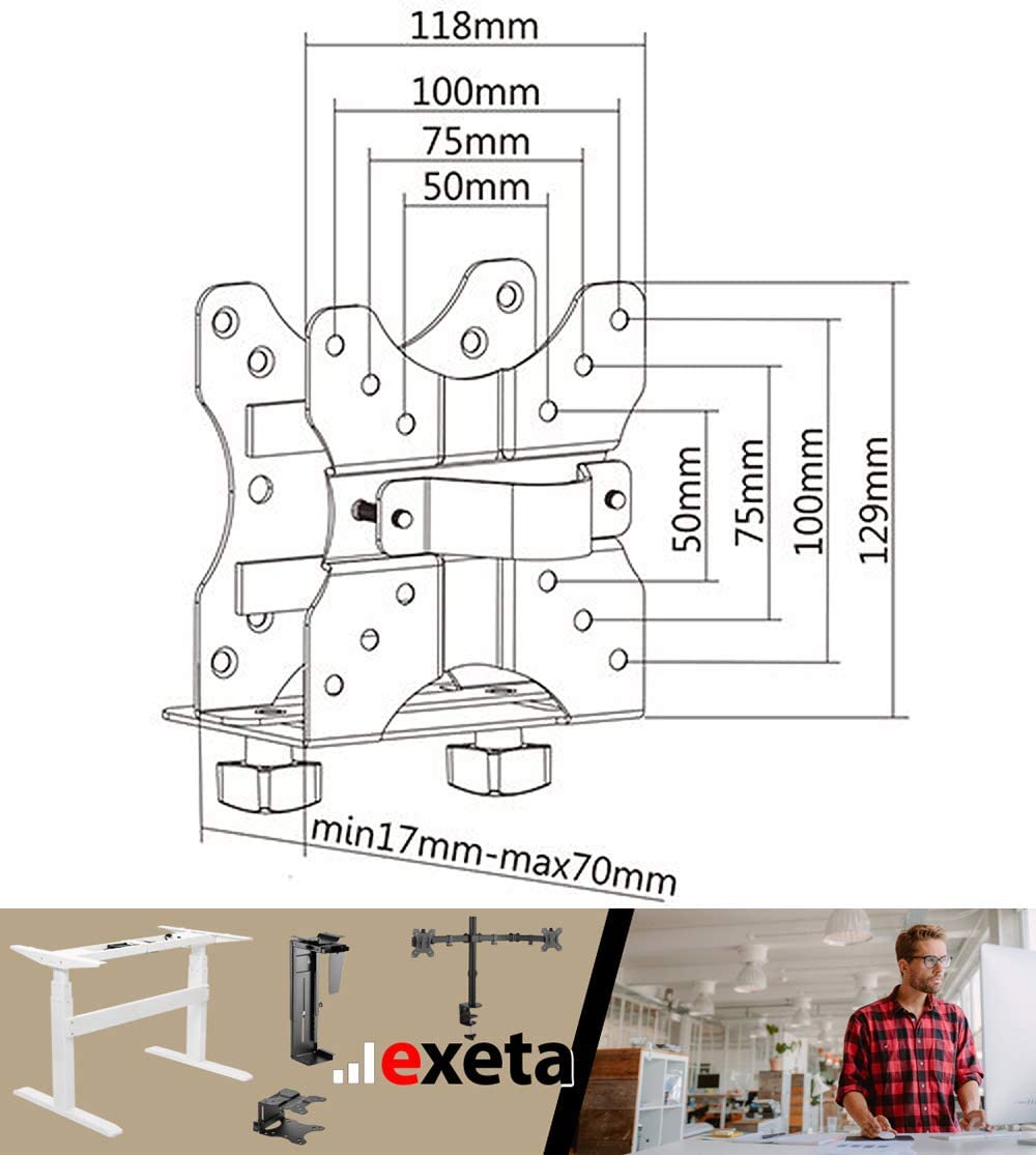 - Die Halterung ist geeignet für Mini-Computer mit einer Dicke von 17 mm bis 70 mm.